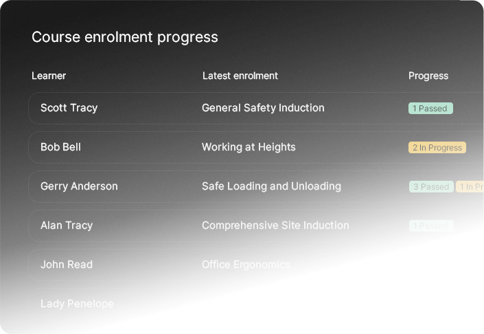 Intuitive administration tools and dashboards empower you to know where your people are up to in their training in real time, including detailed SCORM activity.