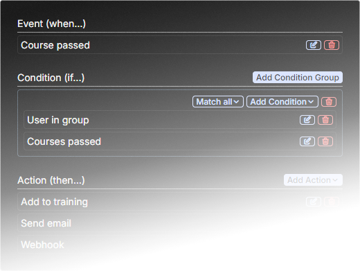 Set up rules to automate away busy work, keep learners progressing, free up administrators and save time and money.