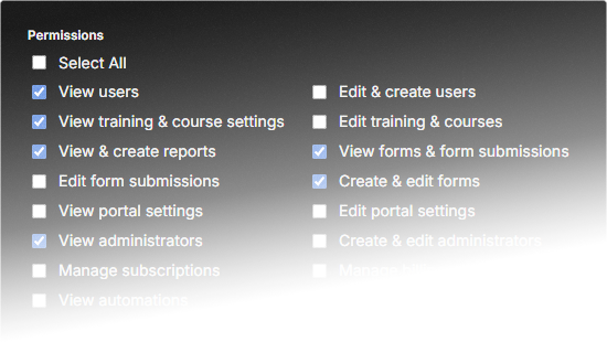 Training contractors or third parties? Easily set up their managers with administration access limited only to specific groups.
